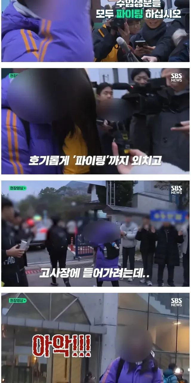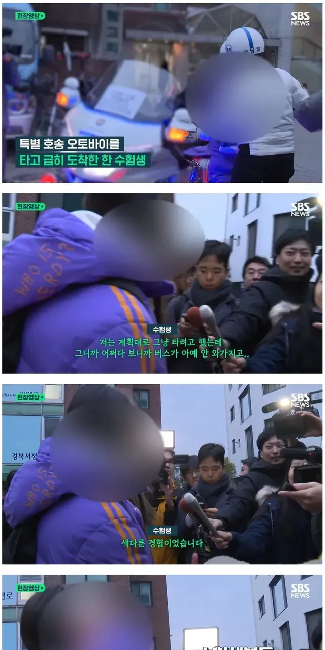 수험생 특별 호송 오토바이 타고 급하게 와서 인터뷰까지 하고 학교 들어갔는데