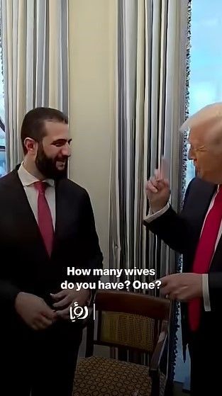 뉴시스 보도에 따르면, 12일(현지시간) 미 연예 매체 피플 등에 따르면, 알샤라 시리아 대통령은 지난 10일 백악관을 방문해 트럼프 대통령과 비공개 회담을 가졌는데, 회담 전후에 현장에 있던 인원이 촬영한 것으로 추정되는 한 영상이 공개됐다.