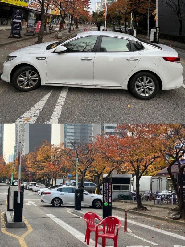 공개된 사진에는 흰색 승용차 한 대가 아파트 단지 차단기 바로 앞에 가로로 세워져 있어 차량 출입을 막고 있는 모습이 담겼다.
