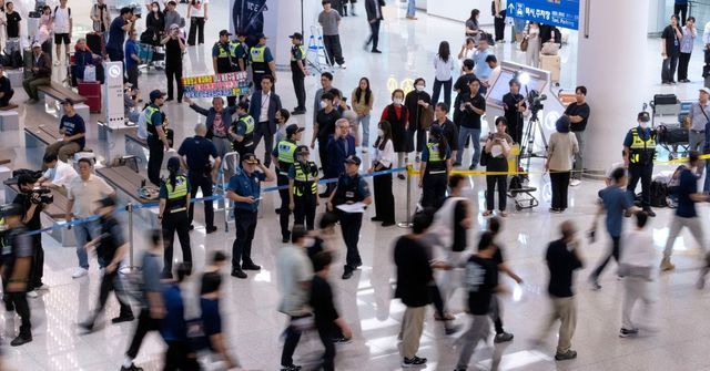 지난 9월 미국 조지아주 엘러벨의 현대자동차그룹-LG에너지솔루션 배터리 합작공장 건설현장에서 미국 이민 당국에 체포·구금됐다가 석방된 한국인 근로자들이 인천국제공항을 통해 귀국하고 있다. / 뉴스