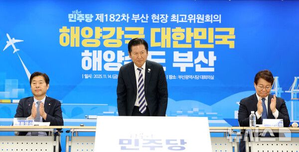 정 대표는 "이재명 정부는 해양수도 부산을 약속했다"며 "해양수산부는 12월까지 부산으로 이전을 마칠 예정이다. 당정은 이전기관의 원활한 정착을 위해 부산 해양수도 특별법을 통과시키기로 협의했다"고 말했다. 이어 "북극항로 구축 지원법도 연내 처리하겠다"고 말했다.