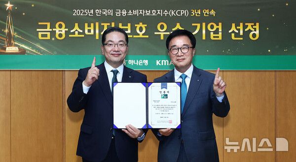 하나은행은 한국능률협회컨설팅(KMAC)이 주관하는 2025년 '한국의 소비자보호 지수(KCP)' 조사에서 3년 연속 '한국의 금융소비자보호 우수 기업'으로 선정됐다고 14일 밝혔다.