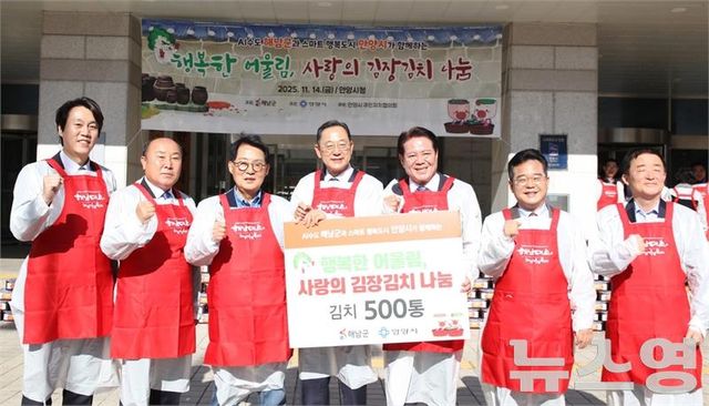 (뉴스영 이현정 기자) 안양시는 14일 전남 해남군과 ‘2025년 김장김치 나눔행사’를 개최하고 고향사람기부금 전달식을 가졌다.