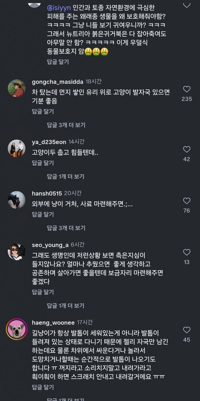 그나저나 고양이가 뭐 토종 야생동물도 아니고 우리가 사는 곳이 그들의 영역이었을수도 있는데 <= 이 저능아새낀 뭐노 ㅋㅋㅋ