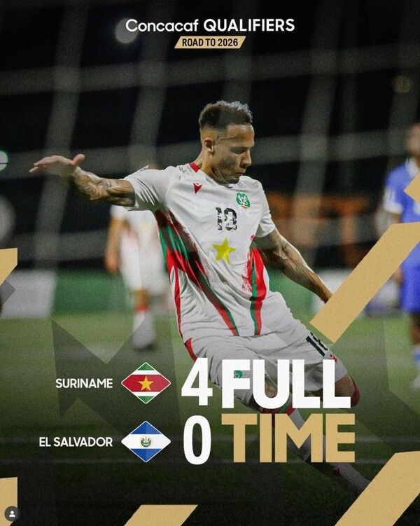 뉴시스 보도에 따르면, 수리남은 14일(한국 시간) 수리남 파라마리보의 프랭크 에세드 스타디온에서 열린 엘살바도르(94위)와의 2026 북중미 월드컵 북중미카리브축구연맹(CONCACAF) 지역 3차 예선 A조 5차전 홈 경기에서 4-0 대승을 거뒀다.