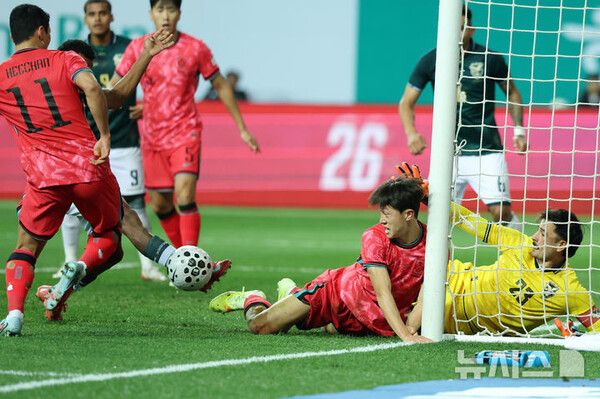 뉴시스 보도에 따르면, 홍명보 감독이 이끄는 한국 대표팀은 14일 대전월드컵경기장에서 열린 볼리비아와의 친선경기에서 득점 없이 전반을 0-0으로 마쳤다.