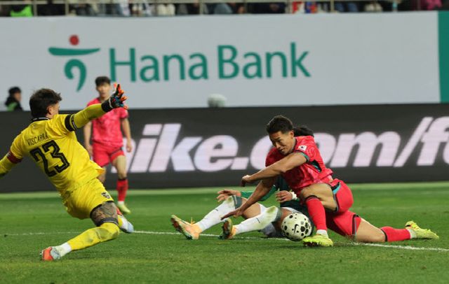 이날 조규성은 후반 31분 손흥민(로스앤젤레스FC)을 대신해 그라운드를 밟았다. 이어 후반 42분 오른쪽에서 넘어온 크로스를 상대 수비수가 제대로 처리하지 못하자 기회를 놓치지 않았다. 상대와 경합을 이겨낸 뒤 넘어지면서도 발을 뻗어 밀어 넣었다.