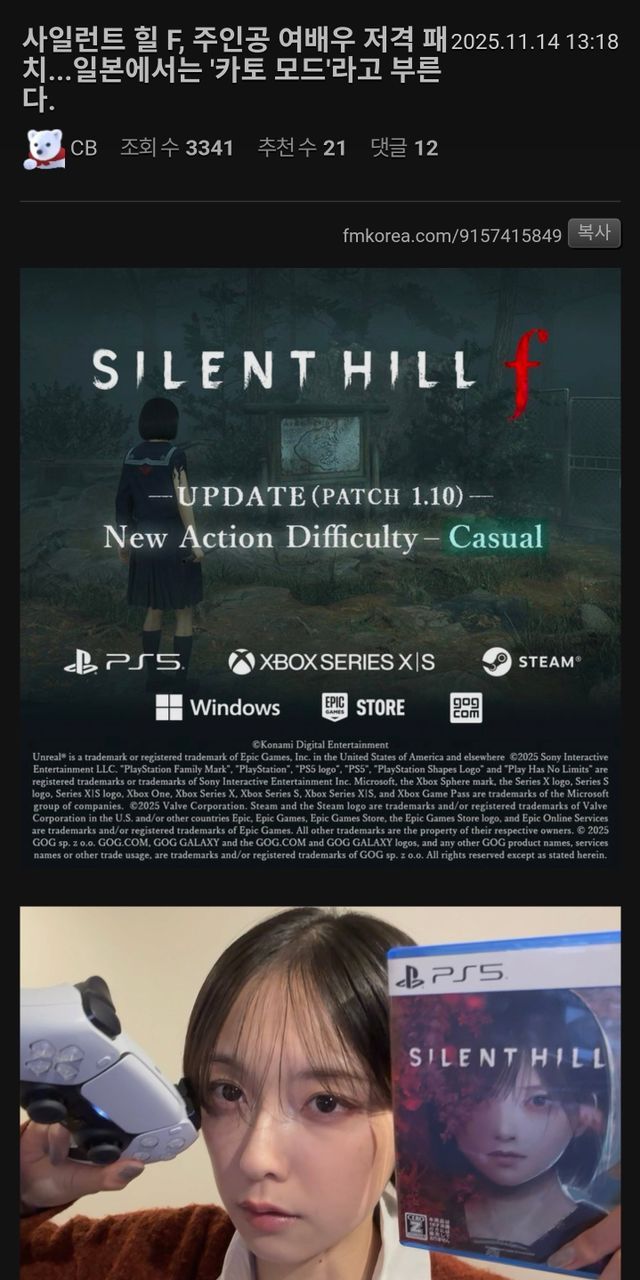 사일런트힐 공포겜... 계집애 난이도 업데이트