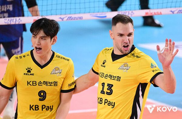 KB손해보험은 외국인 주포 비예나가 양 팀 최다인 27점을 뽑으며 승리에 앞장섰다.