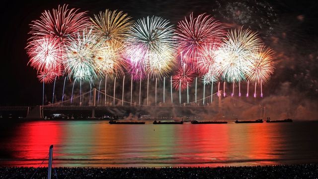 지난해 부산 수영구 광안리해수욕장 일대에서 열린 '제19회 부산불꽃축제'에서 화려한 불꽃이 부산 밤바다를 수놓고 있다. / 뉴스1