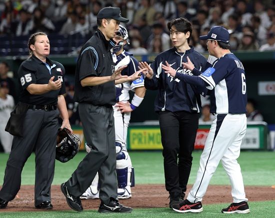 (엑스포츠뉴스 도쿄, 김근한 기자) 한국 야구대표팀 류지현 감독이 한일전 10연패 수렁에 빠졌다. 메이저리그 소속 구심의 황당한 오심 속에 경기 흐름을 완전히 빼앗긴 점이 아쉬웠다.