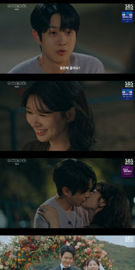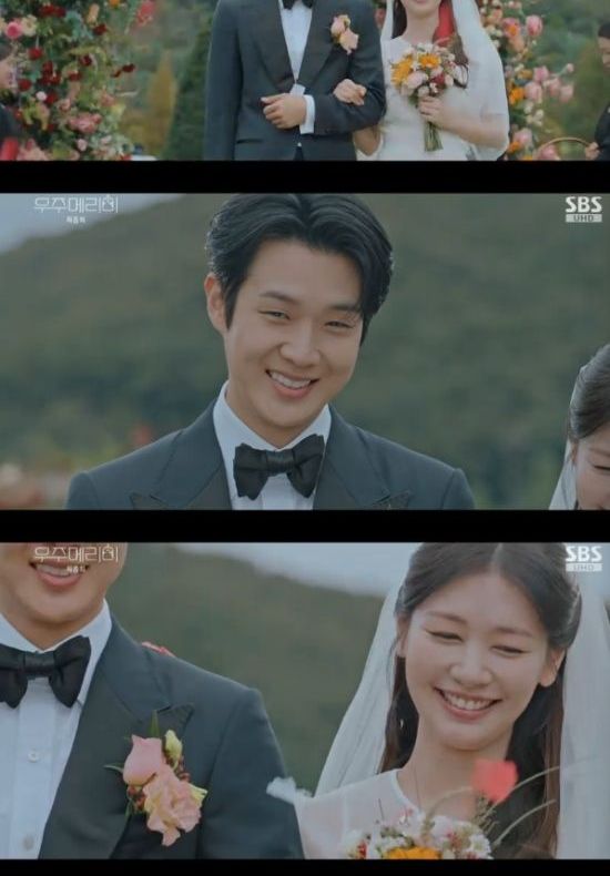 15일 방송된 SBS 금토드라마 '우주메리미' 최종회에서는 우여곡절 끝에 결혼식을 올리는 김우주(최우식 분)와 유메리(정소민)의 모습이 그려졌다.
