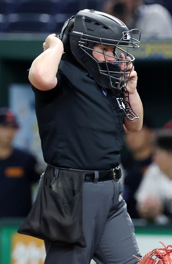 하지만, 중계 화면상 문현빈의 타구는 분명히 마운드를 먼저 맞은 뒤 투수 몸에 굴절돼 튀어올랐다. 명백한 오심이었지만, 메이저리그 소속 젠 파월 구심은 4심 합의 뒤 아웃 오심을 그대로 유지했다.