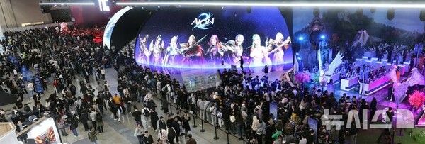 사상 첫 지스타 메인 스폰서로 참가한 엔씨는 시연작으로 ▲아이온2 ▲신더시티 ▲타임 테이커즈 ▲리밋 제로 브레이커스를 출품했다. 이 중 단연 인기를 끈 건 '아이온2'였다. 개막일인 13일 대기 시간이 최장 4시간까지 달했던 이 게임에 대한 게이머 기대는 원작 감성을 유지하면서도 완성도 높은 빌드가 나왔다는 기대 심리와 맞물리며 지스타 현장에서 가장 긴 대기 행렬을 만들었다.