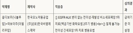 이번 심의에서는 총 7개 약제에 대한 급여기준이 신설됐으며, 비소세포폐암과 간세포암 적응증은 추가 심의가 필요한 것으로 판단됐다.