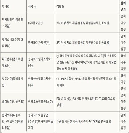 다만, 급여기준이 미설정된 비소세포폐암 및 간세포암 적응증에 대해서는 향후 추가 심의를 통해 최종 급여 여부가 결정될 예정이다.
