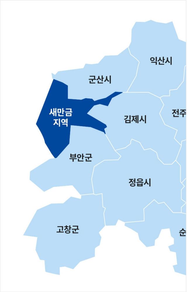 서해안 중앙부에 위치하며, 군산·김제·부안 세 지역이 사업 대상이며, 서해안 산업벨트, 관광벨트, 과학기술벨트 등이 겹치는 전략적 지역으로 평가된다.