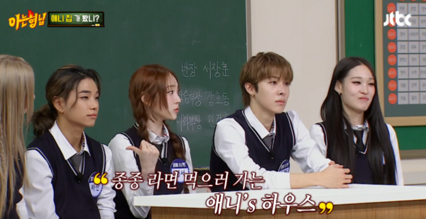 멤버들의 집 방문에 대해 애니는 "멤버들이 라면 먹고 가기도 하고 자기 집처럼 들락날락한다"고 답했다. 이어 "집이 회사와 제일 가까운 논현동이라 동선 상으로 일정 끝나고 들르기 좋다"고 설명해 웃음을 더했다. 애니는 "부모님이 '우리 집이 방앗간이 된 것 같다'고 말하셨다"고 덧붙였다.