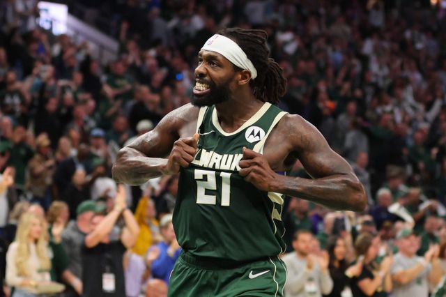 MILWAUKEE, WISCONSIN - APRIL 30: Patrick Beverley #21 of the Milwaukee Bucks reacts to a score during the second half of game five of the Eastern Conference First Round Playoffs against the Indiana Pacers at Fiserv Forum on April 30, 2024 in Milwaukee, Wisconsin. NOTE TO USER: User expressly acknowledges and agrees that, by downloading and or using this photograph, User is consenting to the terms and conditions of the Getty Images License Agreement. Stacy Revere/Getty Images/AFP (Photo by Stacy Revere / GETTY IMAGES NORTH AMERICA / Getty Images via AFP)/2024-05-01 13:25:33/