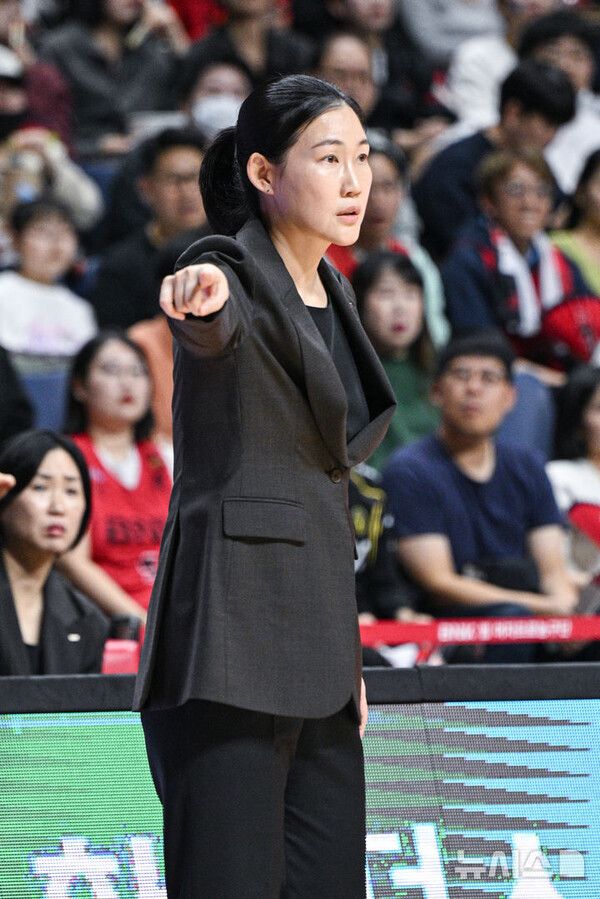 여자프로농구 최초의 '여성 사령탑 맞대결'에서 부산 BNK 박정은 감독이 인천 신한은행 최윤아 감독을 제압하며 시즌 첫 승을 챙겼다.