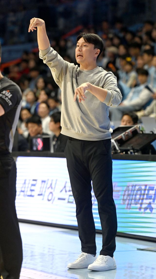 김 감독이 이끄는 삼성은 16일 오후 2시 고양 소노 아레나에서 열린 2025~26 LG전자 프로농구 정규리그 원정경기서 75-72로 이겼다. 3연패 늪에서 탈출한 삼성은 경기 종료 기준 단독 7위(7승9패)가 됐다.