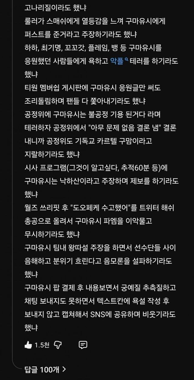 티응갤러들은 구마유시가 "약팀"이 아닌 "강팀"으로 이적하기를 응원하고 있습니다...ㅠ