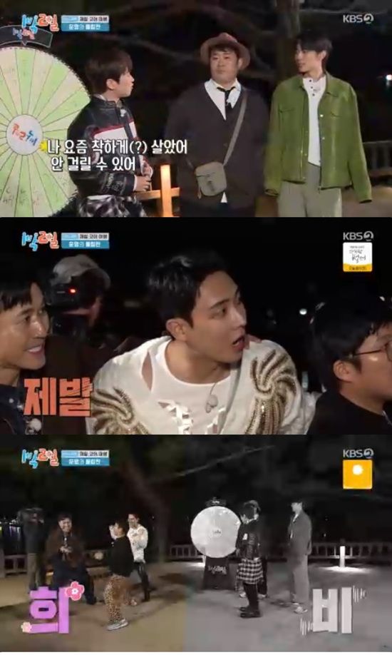 '강철부대'에서 왔다는 태희 작가가 운명의 돌림판을 돌린 결과 최백코어 팀이 걸리면서 문세윤, 딘딘, 유선호가 등반을 하게 됐다.