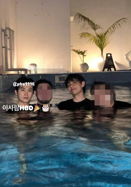 16일 뷔는 자신의 SNS에 사진 한 장을 게시했다. 공개된 사진은 뷔와 박형식, 그리고 지인 두 명이 함께 수영장에서 시간을 보내는 모습을 담고 있다.