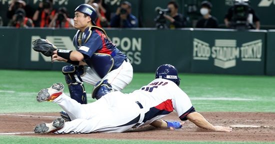 이어진 타석 박해민의 짧은 중전안타가 나왔고, 2루 주자 문현빈이 3루를 돌아 득점을 노렸다. 그러나 상대 송구가 먼저 홈에 도착해 문현빈이 태그아웃되면서 한국은 5-6 한 점 차 추격에 만족해야 했다.