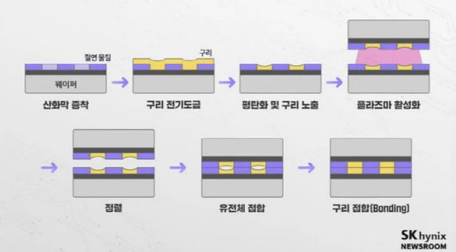 국내 메모리 반도체 기업들은 칩을 쌓을 때 납과 같이 전기가 통하는 돌기(범프)에 열과 압력을 가해 D램과 D램을 붙이는 열압착(TC) 방식 본딩을 사용하고 있습니다. TC 본딩은 칩과 칩을 붙일 때 가교 역할을 하는 범프가 필요하다는 한계가 있습니다.