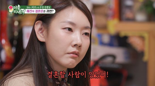 결혼 운도 이야기했다. 무당은 "지금 마흔셋이지. 내후년까지 마지막 성혼이 들어왔다. 결혼할 사람이 있다. 이 사람은 다를 것 같은 느낌이 있다. 이제 들어온다. 연하가 인연이 있다"고 했고, 한혜진은 크게 기뻤다.