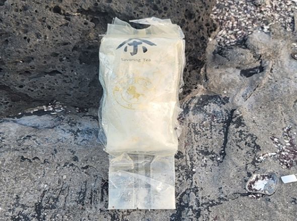 지난 16일 오후 서귀포시 성산읍의 해안가에서 발견된 차 봉지 마약. 제주경찰청 제공