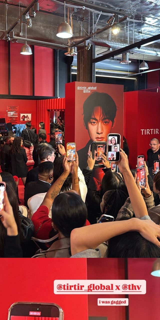 K-뷰티 브랜드 티르티르의 글로벌 팝업행사에 등장한 순간, 현장은 사실상 뷔를 보기 위한 거대한 무대로 변했다.