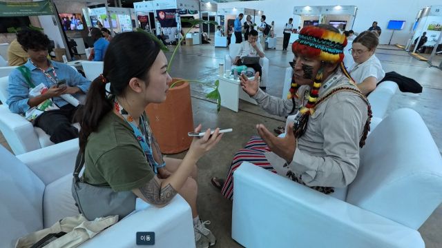 2025년 11월 13일 COP30 블루존에서 에콰도르 환경운동가이자 아추아족의 지도자이자 영화감독인 로미로 플로리안 버르가스 카넬로스(Ramiro Froilan Vargas Canelos)를 만났다.