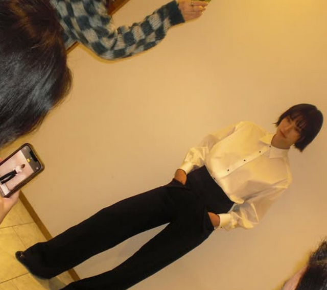 여기에 턱시도 칼라 셔츠와 짧은 단발 헤어스타일, 무심한 듯 주머니에 손을 넣은 포즈가 더해져 중성적이면서도 강렬한 카리스마를 발산했다. 매니시 룩을 완벽하게 소화한 김도연의 모델급 피지컬과 시크한 비주얼은 시상식 현장을 압도했다.