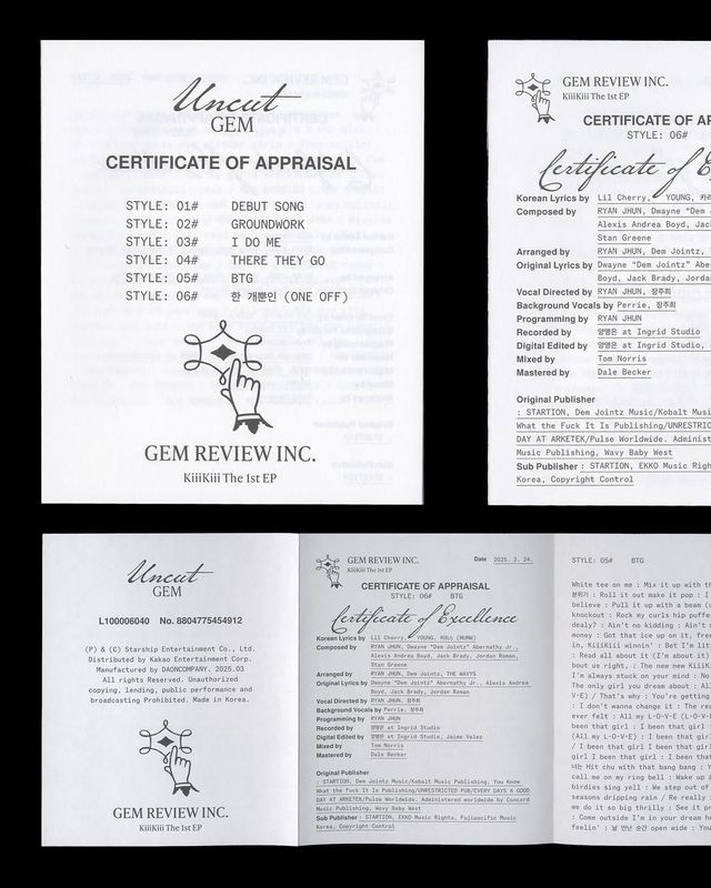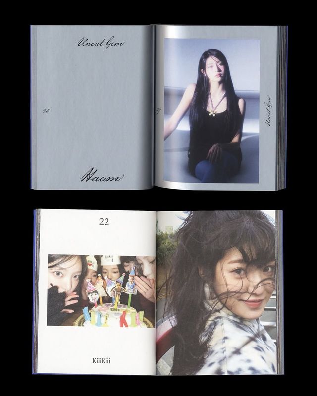 이들의 첫앨범은 프레스룸의 손에서 총 3가지 버전으로 디자인됐다. 덕분에 우리는 앨범 곳곳에서 디자이너의 실험적인 움직임을 포착할 수 있다. 가끔 쓰다만 편지처럼 헐겁게 비워진 공간은 다음 페이지를 상상하게 만들어 주는 부분. 다음 페이지를 상상하기 어려운 불규칙함이 연속되면서 자연스럽게 자유로우면서도 자신만의 결을 찾아가는 소녀들의 메시지가 드러난다. ‘Uncut Gem’이라는 테마가 내포한 미완성의 유니크함을 가장 트렌디하게 보여준 사례다.