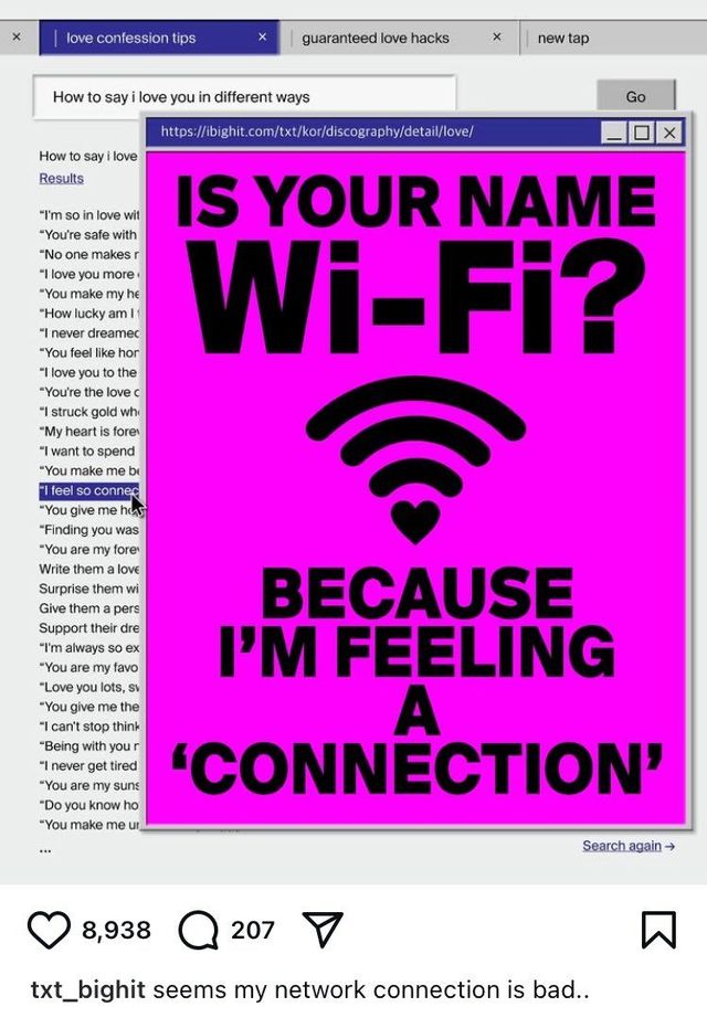 지난 만우절, 시계가 0시를 가르키는 순간 투바투의 공식 인스타그램은 정체를 알 수 없는 사랑고백으로 뒤덮였다. 빈티지한 컬러와 오래된 윈도우 화면을 연상시키는 이미지들이 힌트. 컴백을 암시해 더욱 뜨거운 반응을 이끌었던 만우절 프로모션 그래픽 역시 프레스룸의 솜씨다.