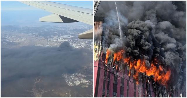 수천 미터 상공을 날아가던 항공기 창밖으로도 검은 연기 기둥이 또렷이 보일 만큼, 충남 천안시 이랜드패션 물류센터 화재 규모는 거대했다.