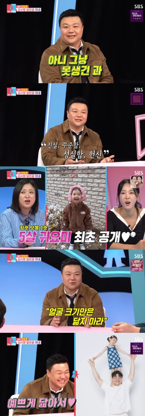 이날 방송에서 태항호가 배우 김사랑 닮은꼴 아내와 결혼한 과정을 전했다. 태항호는 "저처럼 못생긴 과는 진실, 꾸준함, 성실함, 헌신이 있어야한다"면서 웃었다.