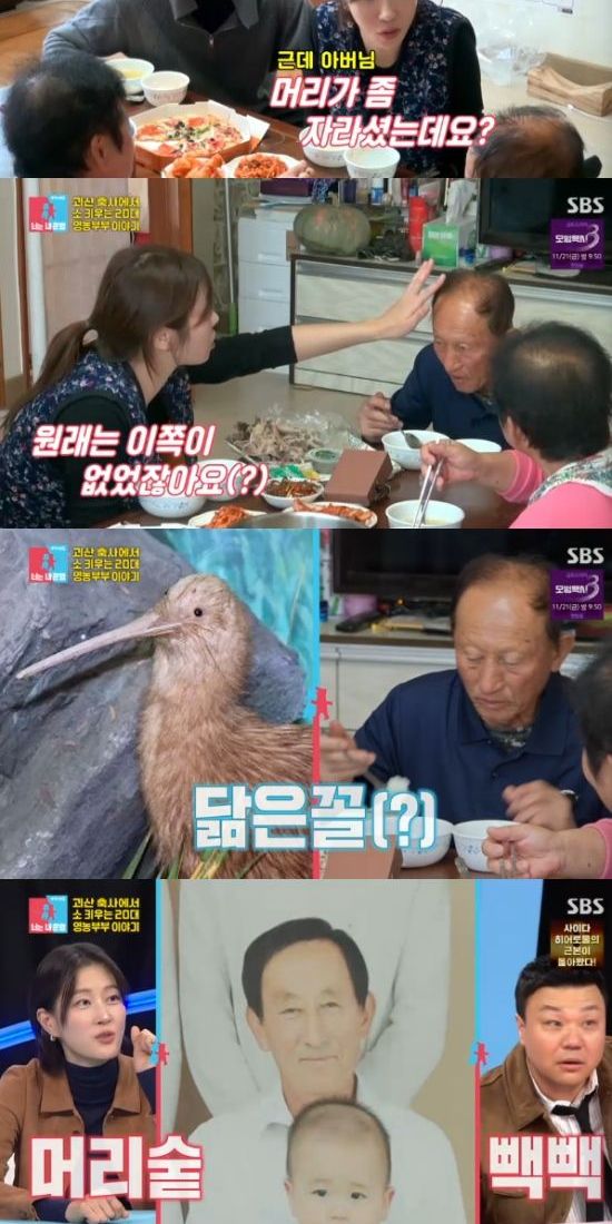 맛있게 백숙을 먹던 중 천혜린은 시아버지를 바라보면서 "머리 많이 자라셨는데? 옆에 머리 없으셨잖아요. 그 때 키위새 같다고 했었는데, (5년 전 머리숱이 풍성했던 때로) 돌아가기까지 얼마 안 걸린 것 같다"고 했고, 탈모가 있는 시아버지께 키위새라고 말하는 천혜린의 모습에 모두가 놀라웃음을 줬다.