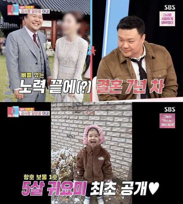 태항호는 2019년 여섯 살 연하 비연예인과 결혼했다. 2년 만인 2021년 딸을 안았다. 이날 처음으로 다섯 살 딸 사진을 공개했다. "예전에 MBC '라디오스타'에선 딸 이름도 공개하기 꺼렸다. 그땐 한 살이라서 자아가 없으니까 물어볼 수 없었다. 이번엔 물어봤다"면서 "어차피 날 닮을 거니까 '얼굴 크기만 닮지 말라'고 엄청나게 빌었다. 누가 봐도 날 닮았지만 예쁘게 닮았다"며 좋아라했다.