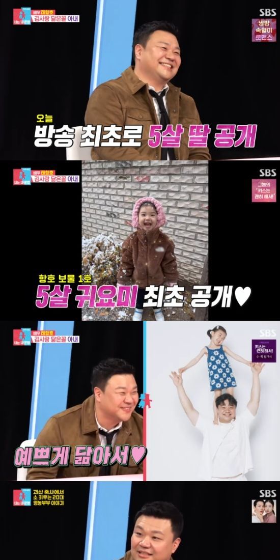 이에 대해 태항호는 "그 때는 딸이 1살이라 자아가 없으니까 허락을 받지 않고 함부로 딸에 대해 말하는 것이 좀 걸렸다. 그런데 이제는 5살이라 딸에게 허락을 받았다"면서 사진을 공개했다.