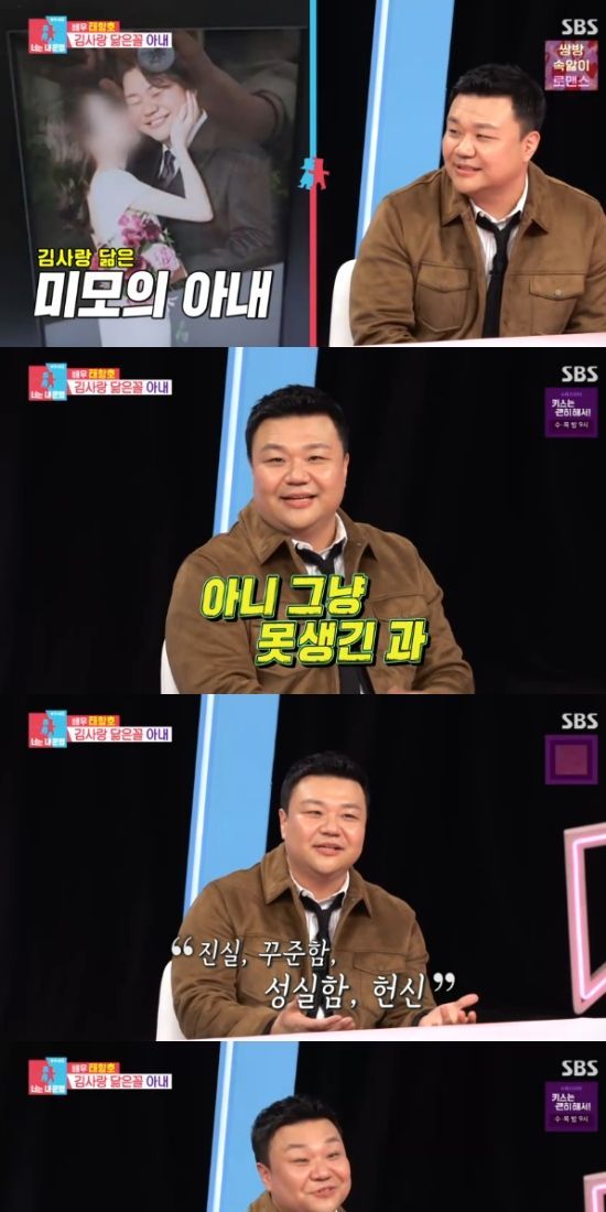 김숙은 "아내를 사로잡은 비결이 무엇이냐"고 궁금해했고, 태항호는 "저희처럼 못생긴 과는 진실, 꾸준함, 성실함, 헌신이 있어야 한다"고 말했다.