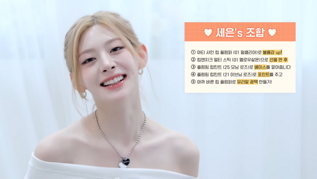 그리고 세은이 추천한 립 조합이 따로 있는데, 플럼퍼로 입술을 잔뜩 키워놨다면? 입술색을 우선 누른 다음, 립 라이너로 입술 경계를 풀어보자. 그리고 베이스 컬러로 채도가 살짝 높은 색을 선택해 깔아주기. 입술 안쪽은 포인트가 될 만한 컬러로 엣지를 더해주면 된다. 마무리로는 앞서 1단계에서 썼던 립 플럼퍼로 한 번 더 글로시한 광택을 얹어보길. 그럼 세은처럼 안에서부터 맑게 차오르는 첫사랑 재질의 입술을 얻을 수 있을 것이다.