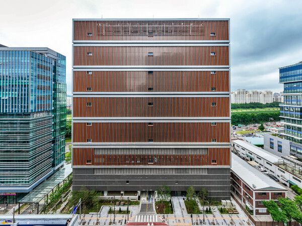 DL건설은 어려운 부지 조건과 제한된 공사기간 속에서도 탑다운(Top-Down) 공법을 적용해 골조공사를 진행했다. 외관 전면부는 금속 루버(Louver)를 활용해 서버랙(Server Rack)의 형상을 표현, 미래지향적인 이미지를 구현했다. 외관 후면부에는 일조량을 정밀 분석해 163.38kW 규모의 태양광 패널을 설치, 상용 가능한 친환경 발전 설비를 구축함으로써 지속가능성을 고려한 설계를 실현했다.