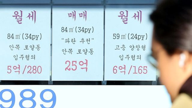 서울 시내 한 부동산에 월세·매매 안내문들이 붙어있다. / 뉴스1