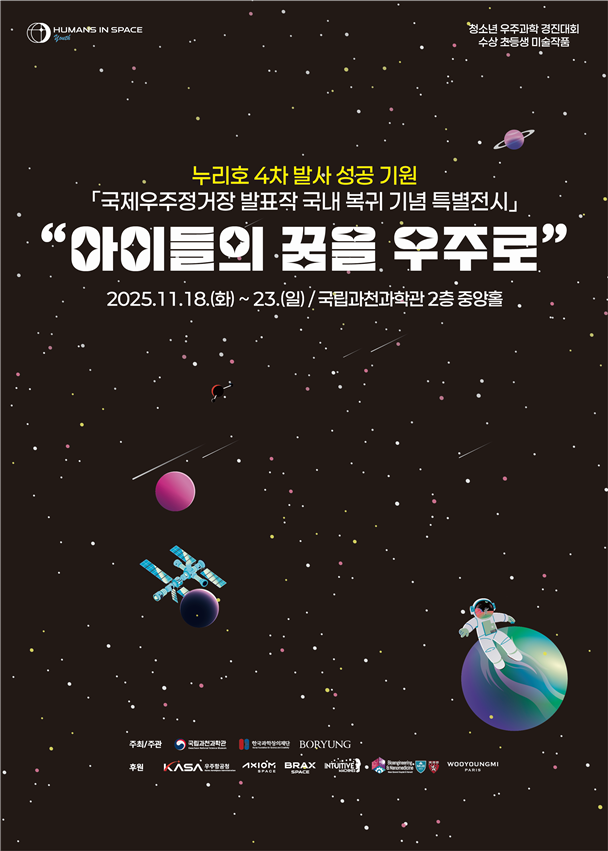 과학관 중앙홀 2층에서는 한국과학창의재단, 보령과 공동으로 마련한 '아이들의 꿈을 우주로' 특별전시가 열린다.