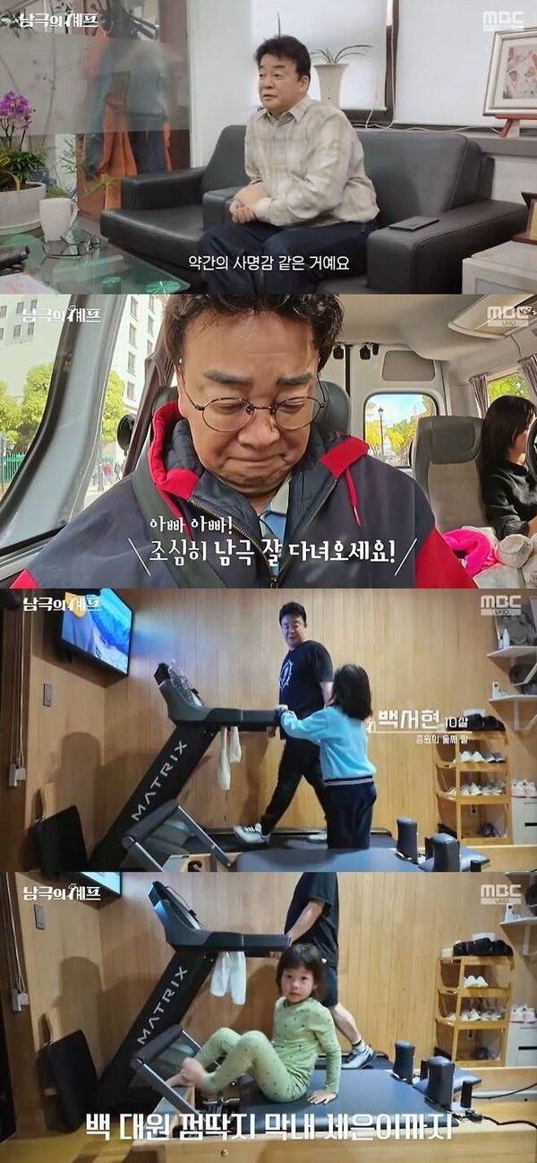 이날 방송에서 백종원은 두 딸 응원을 받고 남극으로 향했다. 백종원은 "지금 진짜 기후가 (심각하다). 이번 여름에 깜짝 놀랐다. 배추값이 장난 아니었다. 남극은 기후 변화의 시작이다. 그걸 연구하기 위해 가 있는 분들이 힘들게 잘 버텨주고 있다. '내가 뭘 해줄 수 있는 게 있을까' '할 수 있으면 해야지'라는 약간의 사명감 같은 것"이라며 "사실 부담은 있다. 맛으로만 가지 말고, 의미있는 식사를 한번 만들어보자"고 했다.