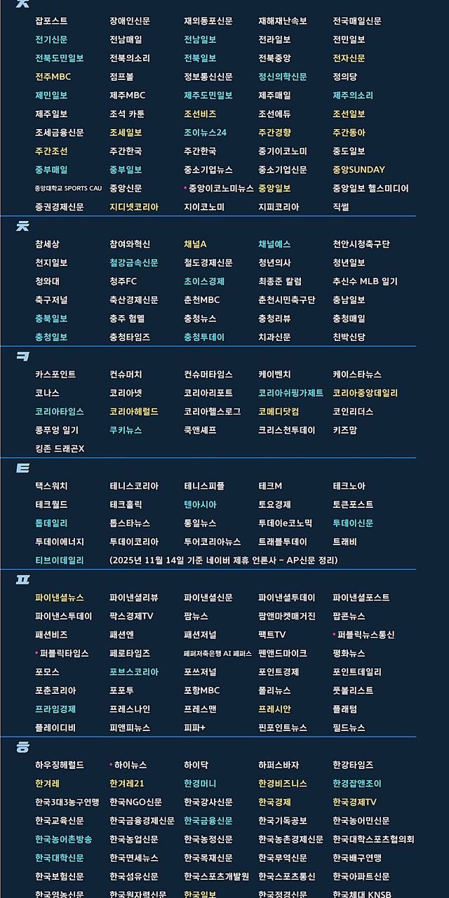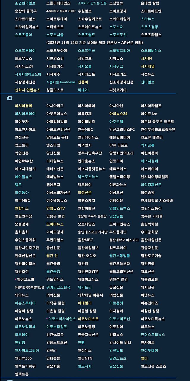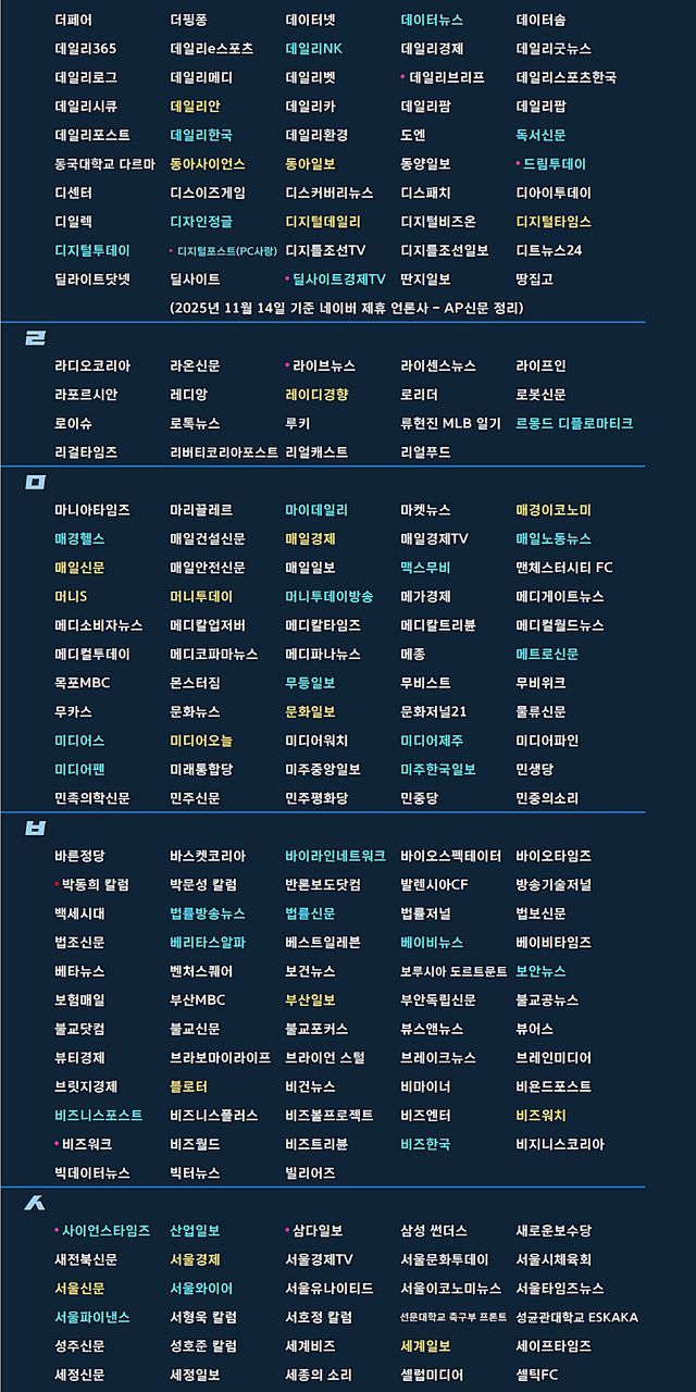 하지만 올해 매체 매각 등으로 추정되는 제호가 바뀐 매체들의 리스트를 업데이트 해달라는 민원이 많아져 2025년 네이버 뉴스 제휴 매체들을 정리하게 됐다.