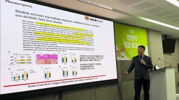 이번 강연은 지난 9월 27일 중앙대학교 약학대학 및 R&D센터에서 개최됐으며, 전국 약학대 학생 60여 명이 참여했다. 강연은 김성건 약학박사가 맡아, 브랜드의 핵심 원료인 신소재 ‘아구아헤’의 활성 기전, 인체 내 작용 메커니즘, 기능성 검증 절차를 중심으로 진행됐다.